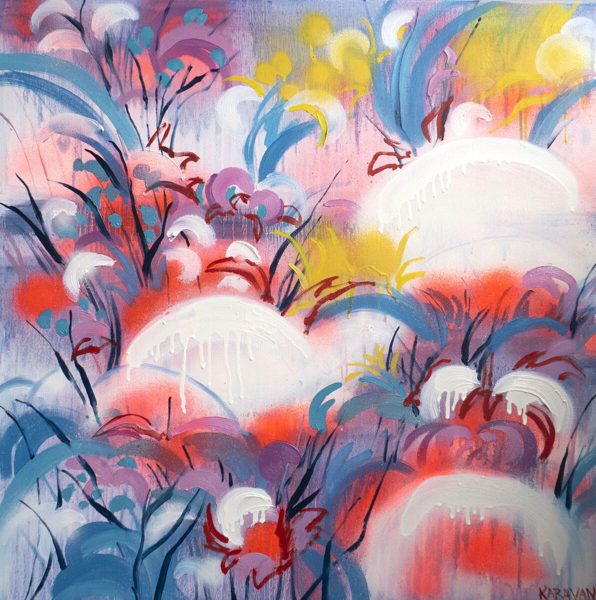 Charcoal & Acrylic on Canvas in a anthracite grey floating frame. Artwork is ready for wall mounting.